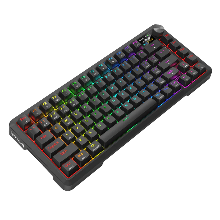 Bàn phím Redragon Behemoth K724 Pro là chiếc bàn phím chơi game cao cấp với thiết kế 75% (81 phím), mang lại sự gọn gàng mà vẫn đầy đủ chức năng. Điểm nhấn bao gồm màn hình LCD TFT, nắc điều khiển media, và khả năng kết nối linh hoạt 3 chế độ (có dây USB-C, không dây usb receiver và hỗ trợ kết nối Bluetooth).