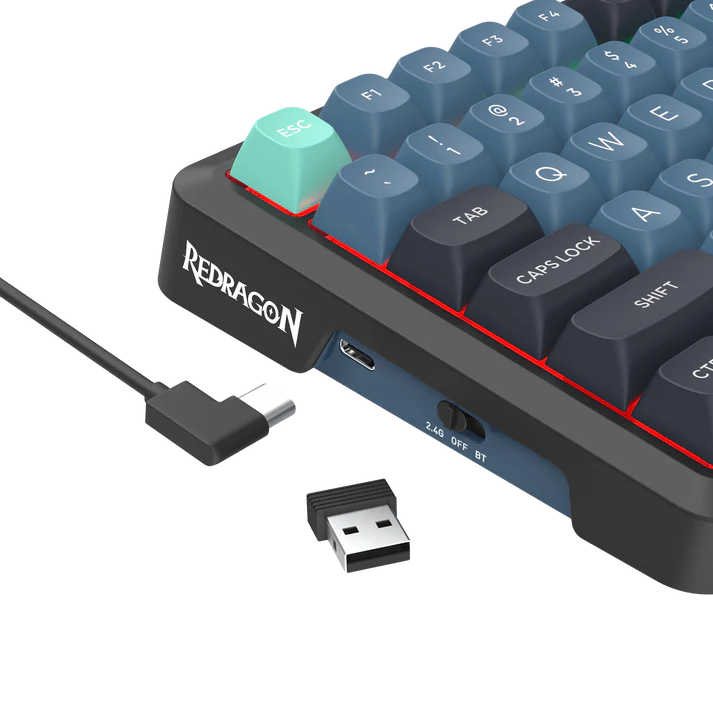 Được trang bị công nghệ kết nối tri-mode tiên tiến của Redragon, hỗ trợ USB-C có dây, Bluetooth 3.0 / 5.0 và không dây 2.4GHz, mang đến trải nghiệm sử dụng linh hoạt, ổn định và nâng tầm hiệu suất trong mọi tình huống.