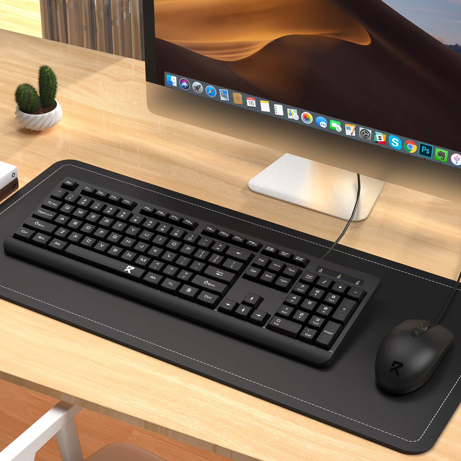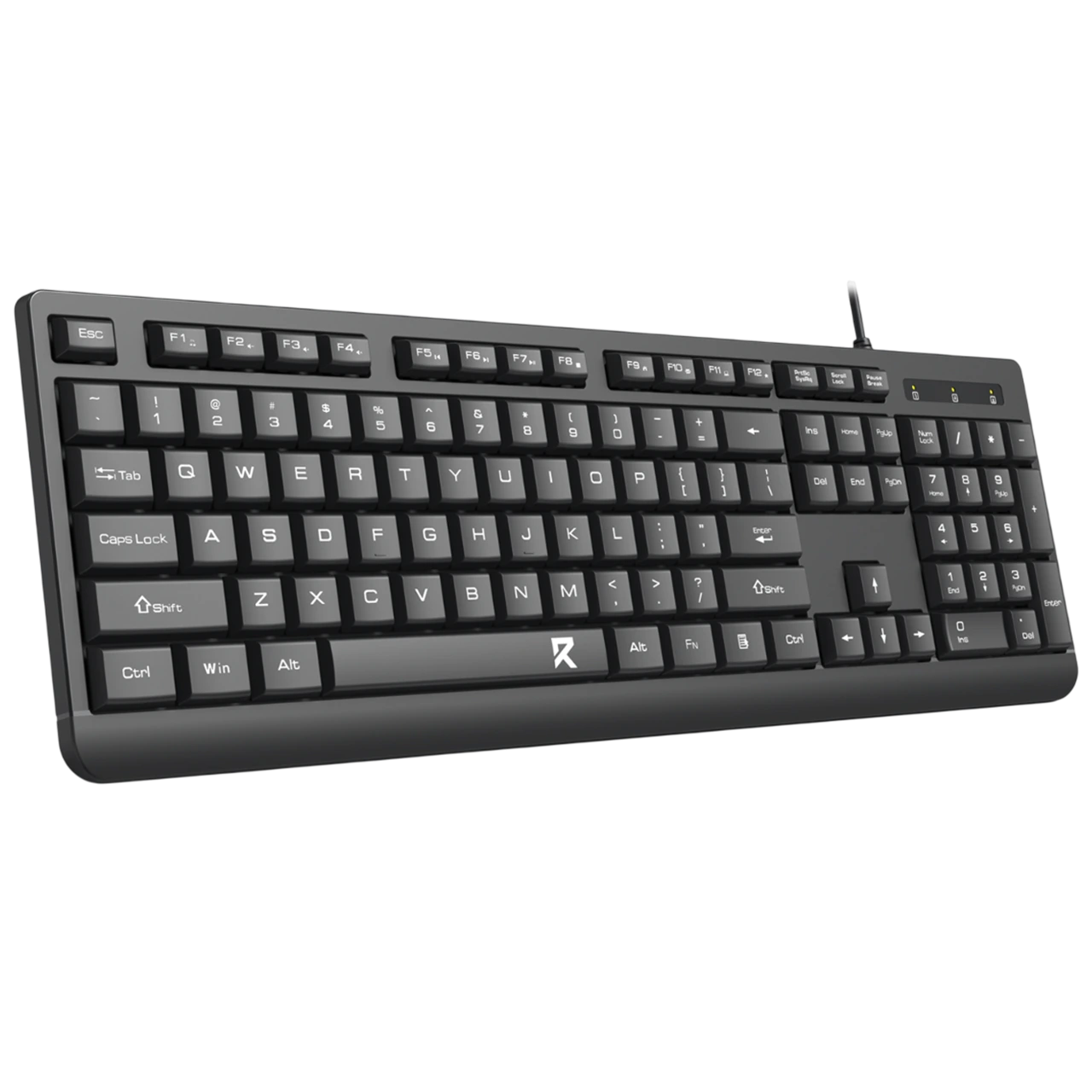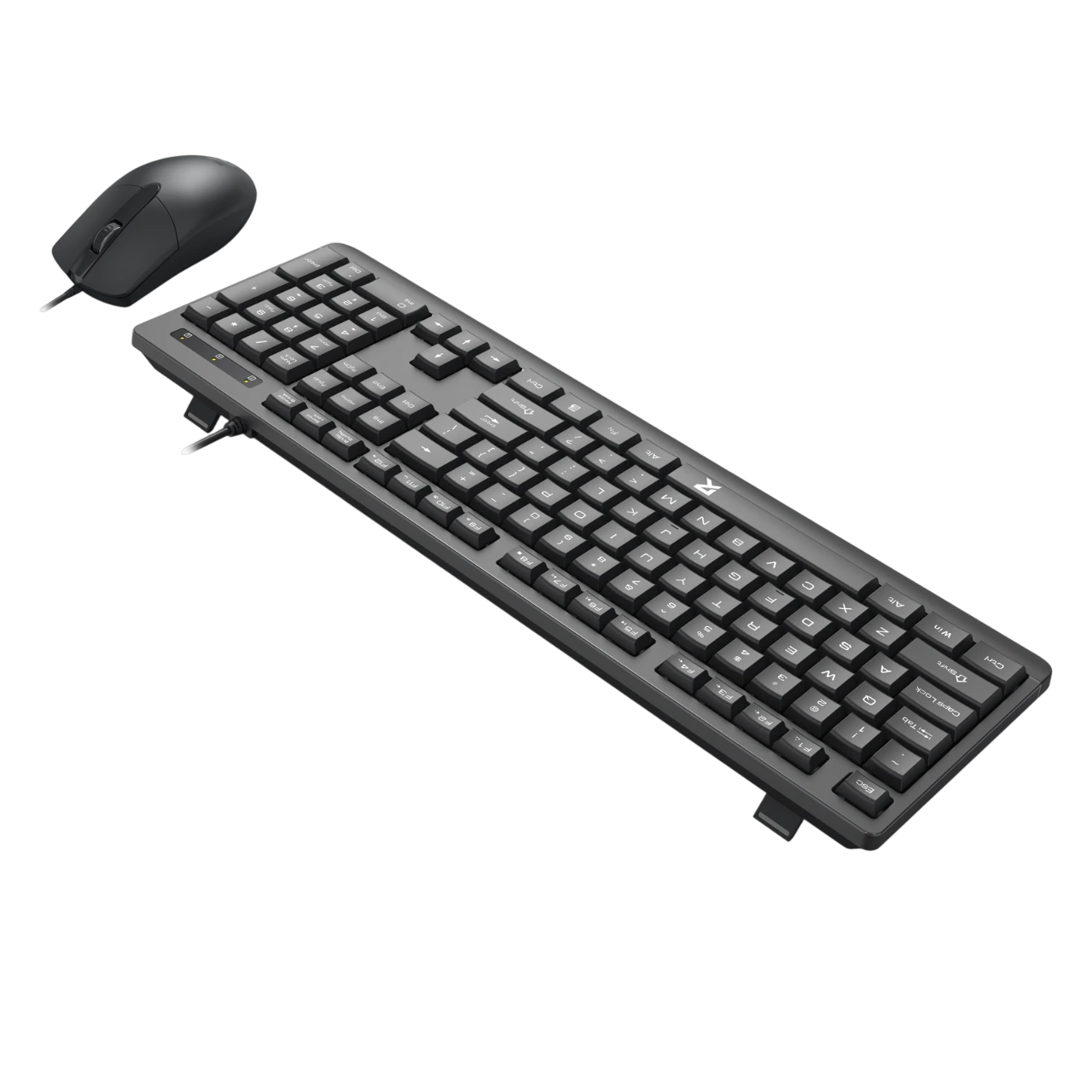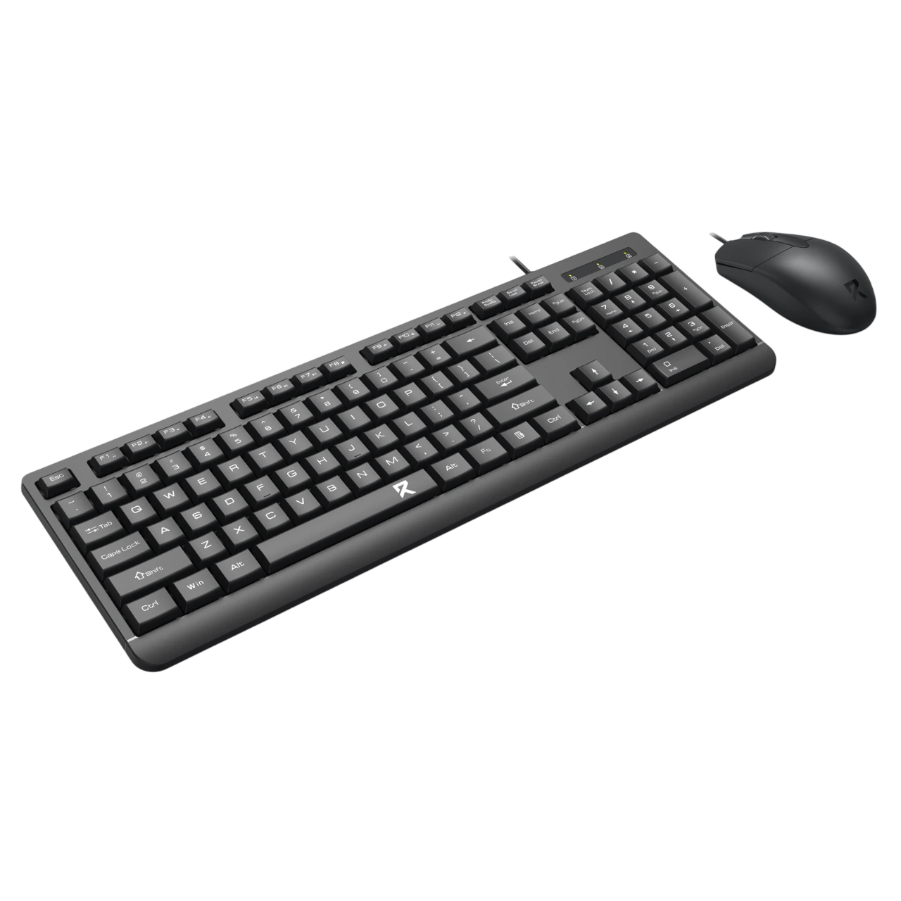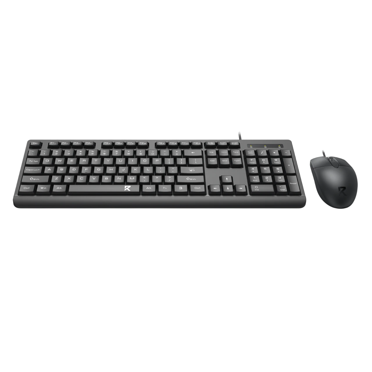 Bộ bàn phím và chuột full size được thiết kế theo chuẩn công thái học, mang lại cảm giác gõ êm và sử dụng thoải mái trong thời gian dài. Bàn phím bố cục đầy đủ phím chức năng, tích hợp cụm số riêng, phù hợp cho làm việc văn phòng và học tập.