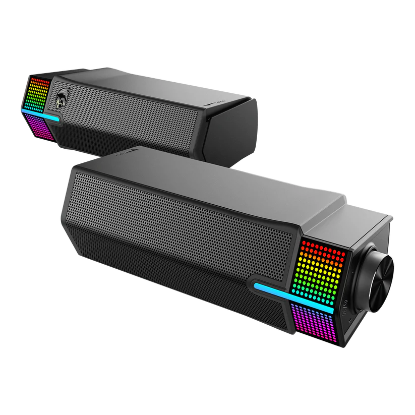 Loa Redragon Yorick GS511 là loa desktop 2.0 hỗ trợ kết nối Bluetooth không dây kết hợp nguồn USB, thiết kế dành cho gaming, nghe nhạc và xem phim với âm thanh stereo rõ ràng cùng hiệu ứng RGB bắt mắt. Loa có thể sử dụng như hai củ loa riêng biệt trên bàn hoặc ghép lại thành một soundbar liền mạch, linh hoạt theo từng setup.